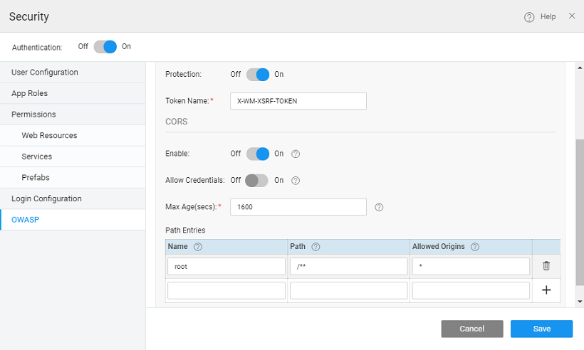 4. Origins: WaveMaker app resources can be exposed only to these origins.