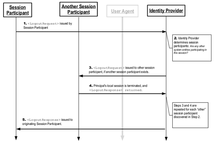 In such a situation, the identity provider can act as a session authority and the relying parties as session participants. At some later time, the principal may wish to terminate his or her session with all session participants in a given session managed by the session authority. This case may be satisfied using this profile of the SAML Single Logout protocol.