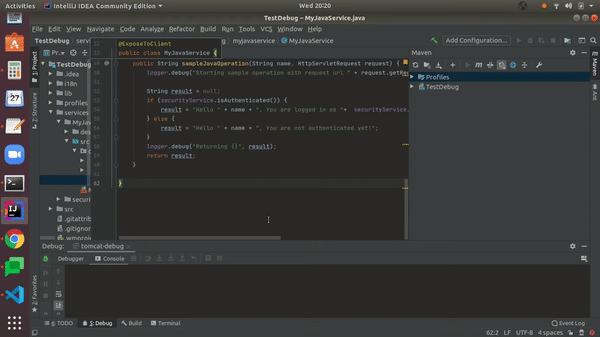 4. To debug any DB/Java service used in the app you need enable debug point in service and run it.