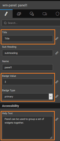 • Help Text - entering text either in plain format or an HTML format will enable help icon on the title bar of the panel which on click would display the help content.
