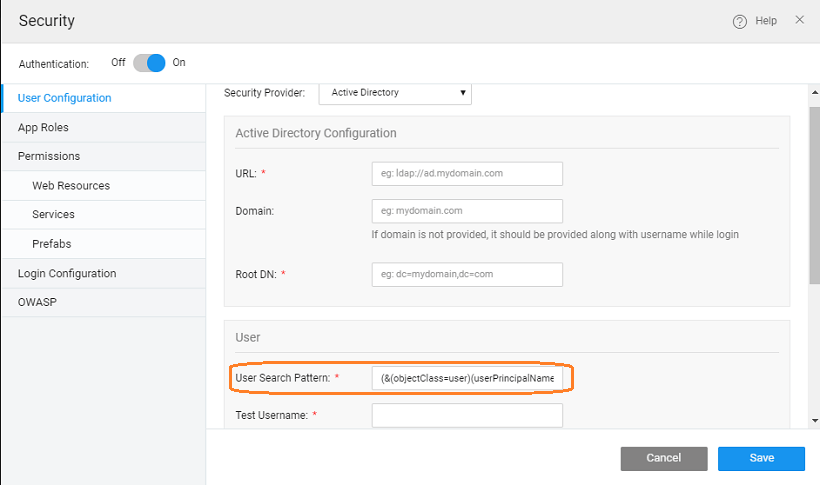 2. enter the User Search Pattern as: (&(objectClass=user)(sAMAccountName={0}))
