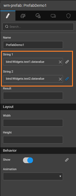 - Bind the properties (inbound) of the Prefab to the two text box.