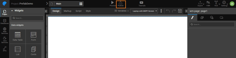 - The Prefab will be available for use across the Projects. You can see the entry in the Artifacts list from the Developer Utilities on the Project Workspace and in the Widget Toolbox of any Project within your workspace.