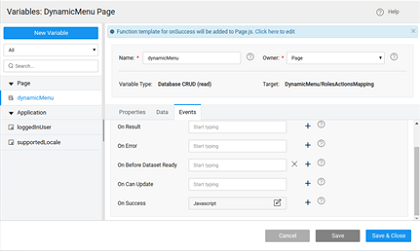 2. Create a DB CRUD variable for the RolesActionMapping entity from the above Database and enable the Request data on page load property.
