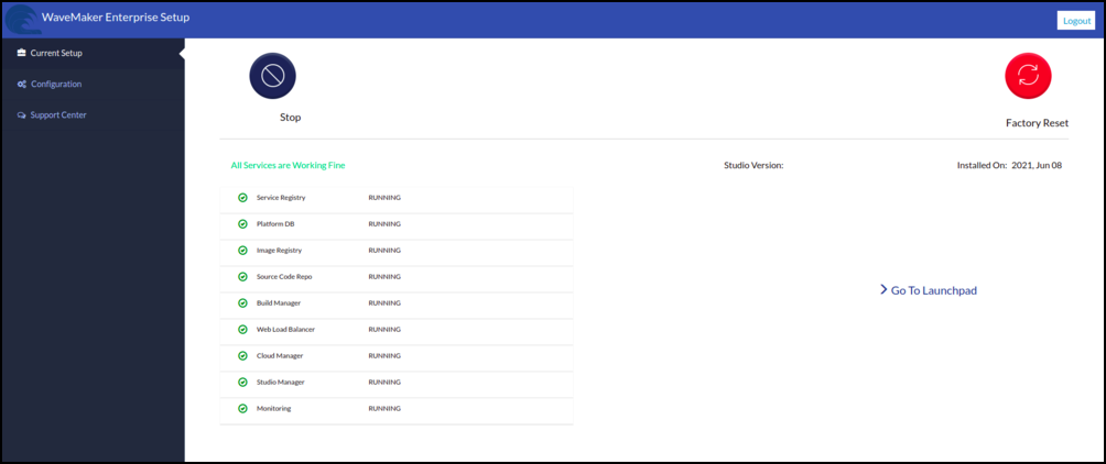 • WaveMaker Platform Stores its state into the disk. WaveMaker Platform administrators can take backups of those disk/directories and can restore them to any previous state.