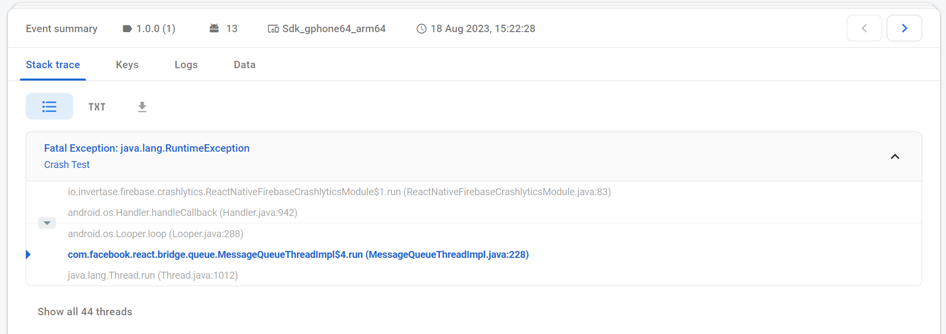 - The dashboard will show a list of recent crashes, with information such as the number of affected users, the issue's impact, and a brief description of the error.