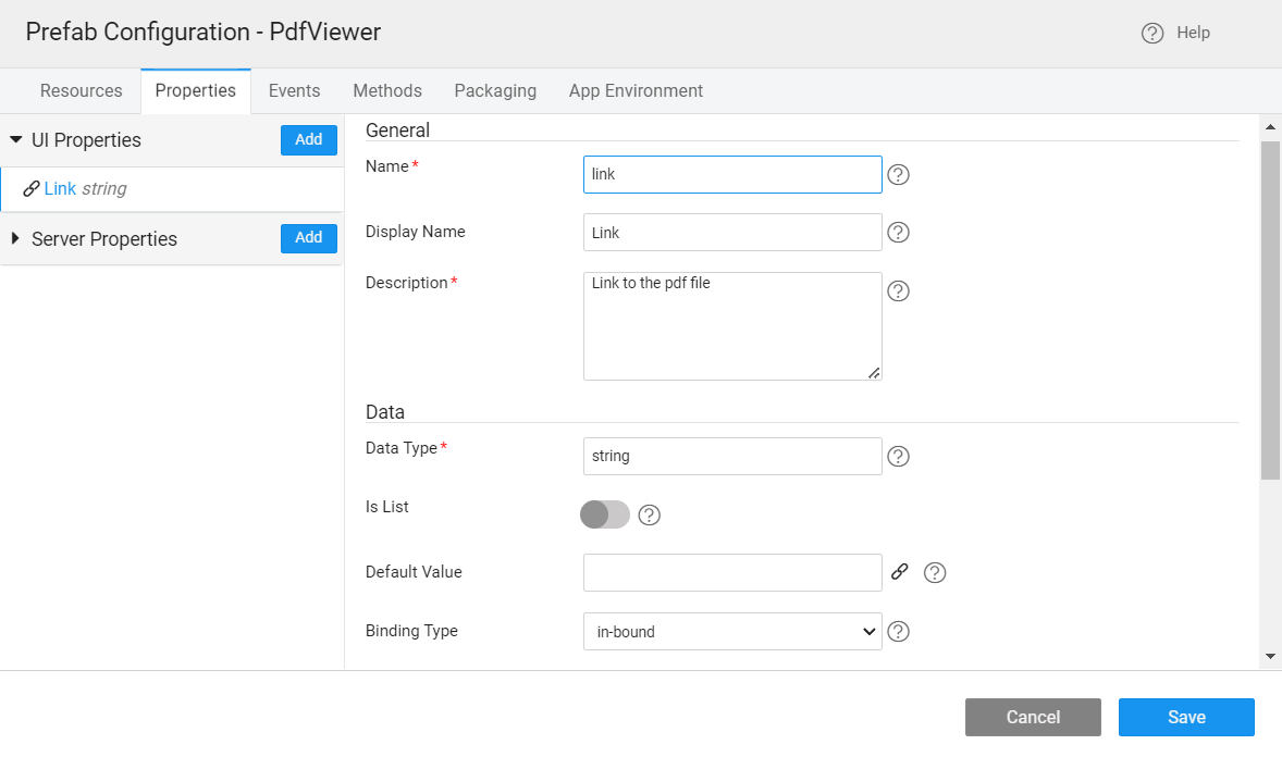 - Then, select the Properties tab. Add Link and Pdfpassword Property in the UI Properties section and click on Save.