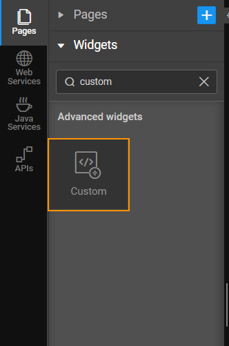 - Go to Widget in the sidebar and search for the Custom widget. Drag and drop it on the Design screen.