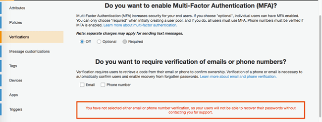 1. After creating the account, Login page shows up. Verification of the user should be done by going to to the Amazon Cognito Create User Pool page and click on Users and Groups in the Left Navigation Pane. This will show you the all the Users added to the user pool.